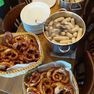 Nachdem am Freitag die Aufstiegsfeier 2.0 im Vereinsheim und drumherum bis in den frühen Morgen abgehalten wurde, nüchterten einige am Samstag auf dem Weinfest aus und kamen mit einem sauberen Preller zum Treffpunkt des letzten Allacher-Saisonspiels am Sonntag, das mit entsprechendem Rahmen zelebriert wurde. Es begann noch bei Sonnenschein um 10.00 Uhr mit einem zünftigen Weißwurscht-Frühstück und einigen Hopfen-Kaltschalen, zu dem sich auch unser Damen-Team, einige Spieler der Ersten und Dritten sowie viele weitere Allacher mit der Zwoaten einfanden.